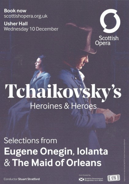 The Maid of Orleans is even more of a rarity. The Bolshoi brought it to Glasgow during the 1990 Year of Culture. It was good to encounter it again, even in just two extracts. Joan of Arc is undoubtedly the heroine here. Perhaps the work is due for reconsideration. A new production in Amsterdam in November 2025 seems to have been received with enthusiasm. That is a co-production with the New York Met, so cinema-goers may with luck expect to see it in a year or two. In his brief talk after we had heard two excerpts, the conductor advised us that a projected Scottish Opera staging had been lost due to Covid, so there is still hope.